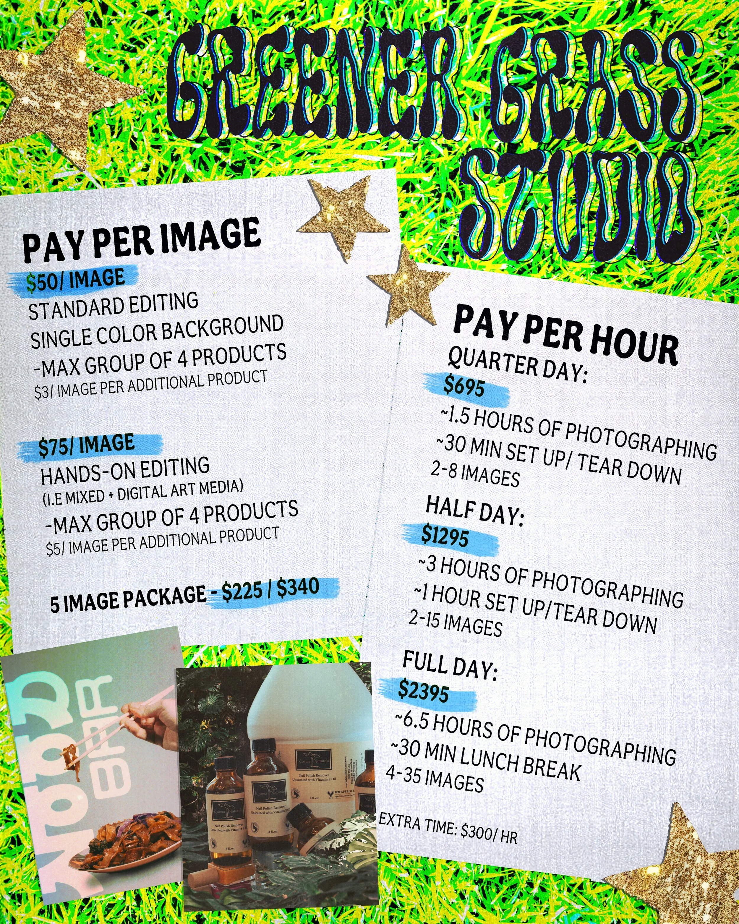 Creative Portraits that are not for brands or small business are priced by the hour starting at $395.